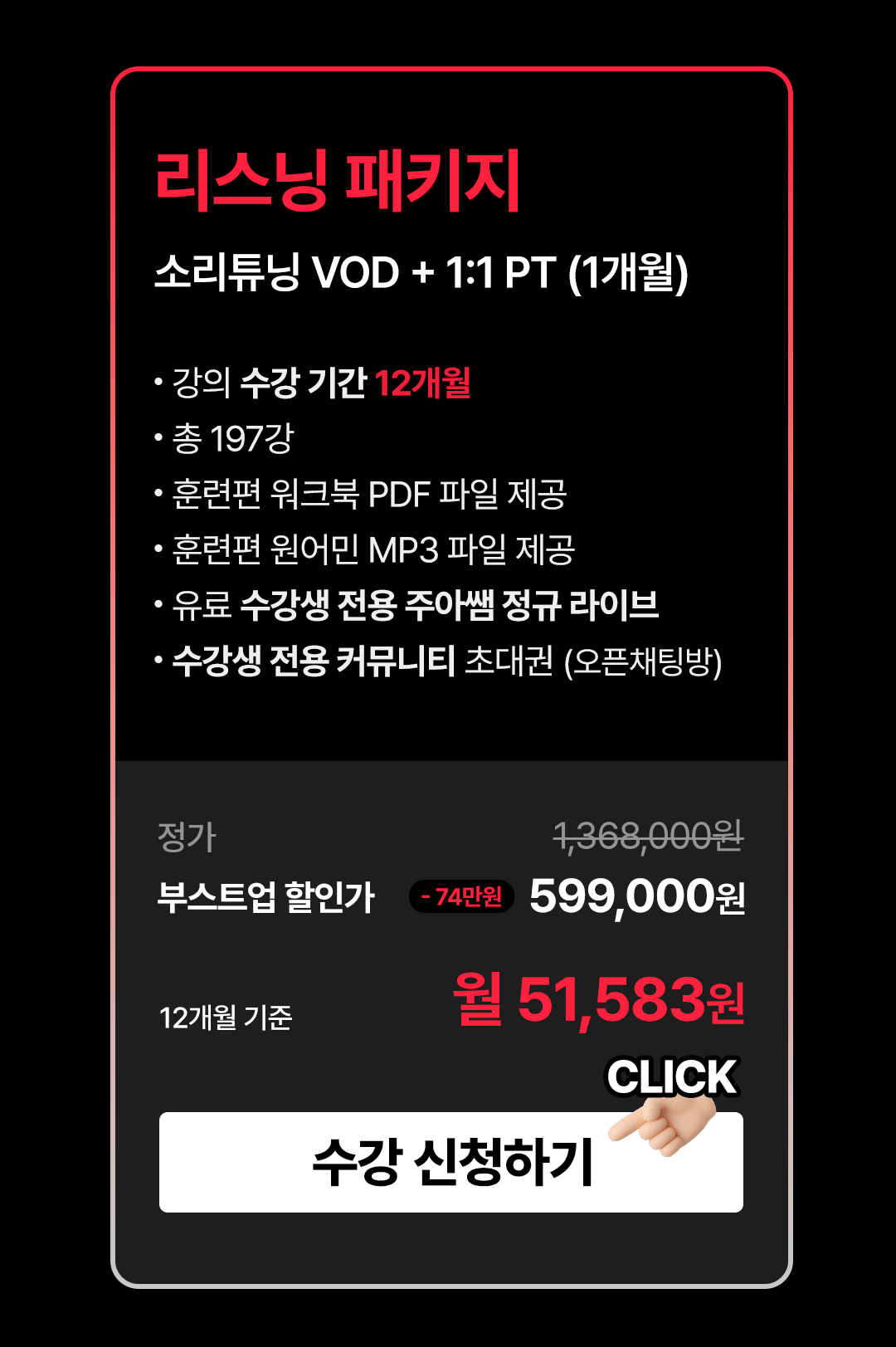 4-1. 소리튜닝VOD(12개월) + 1:1PT(4주)